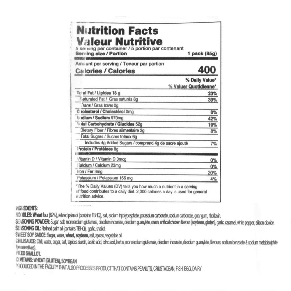 - Made with wheat noodles, onions, garlic, soy sauce and chili sauce