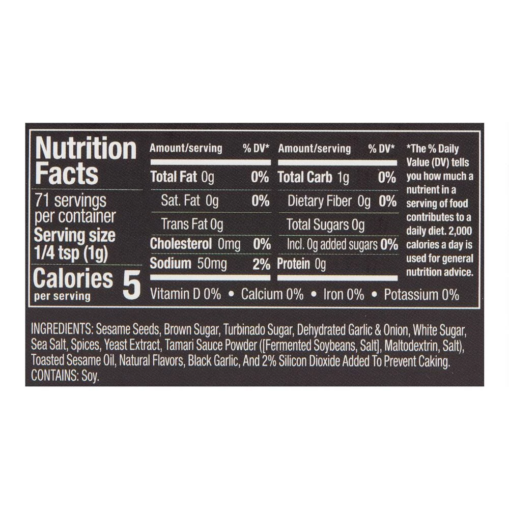 - Made with sesame seeds, brown sugar, onions, black garlic, toasted sesame oil and spices
