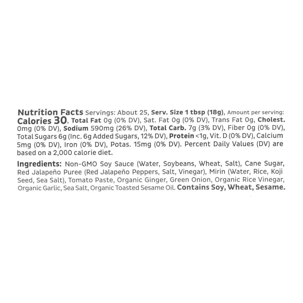 - Made with soybeans, cane sugar, jalapeños, tomato, ginger and spices