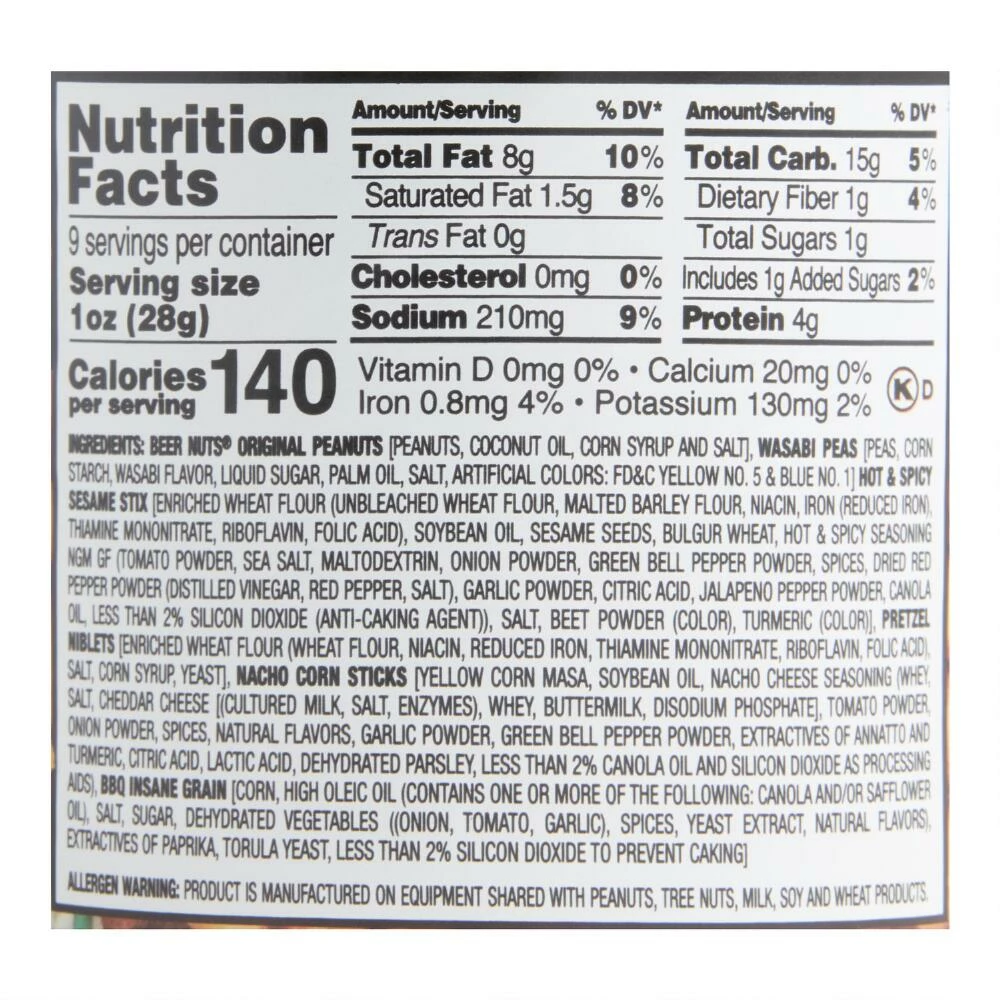 - Made with peanuts, sesame sticks, roasted corn and pretzels