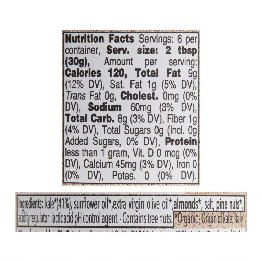 - Made with kale, pine nuts, almonds, extra-virgin olive oil and garlic