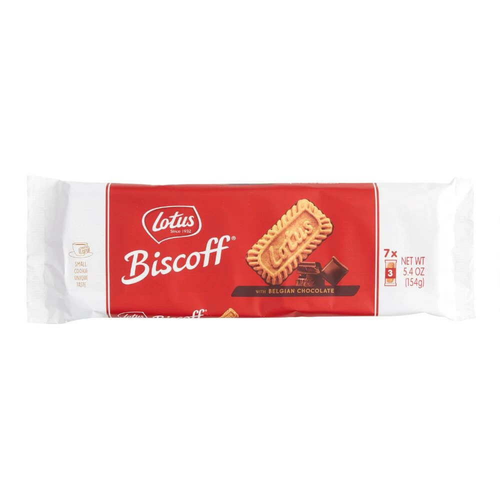 These crisp, thin, caramelized Biscoff cookies are coated on one side with rich, velvety Belgian milk chocolate. Popular international favorites, these unparalleled European biscuits are made from a recipe perfected in 1932. Seven individually wrapped packs are included, each with three cookies inside for lunches and afternoon coffee breaks.