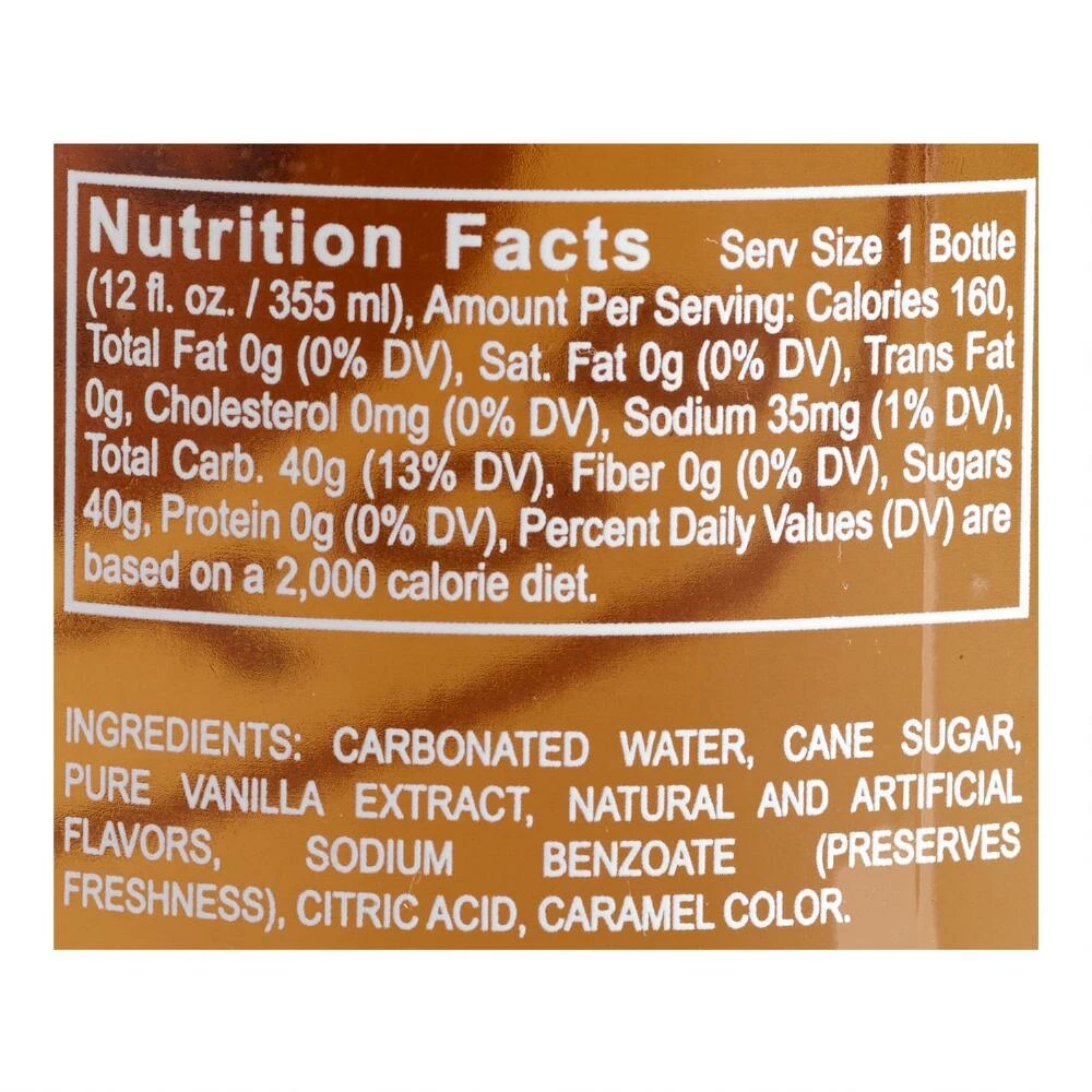 - Made with carbonated water, cane sugar, and extracts of bourbon vanilla, chocolate and coffee