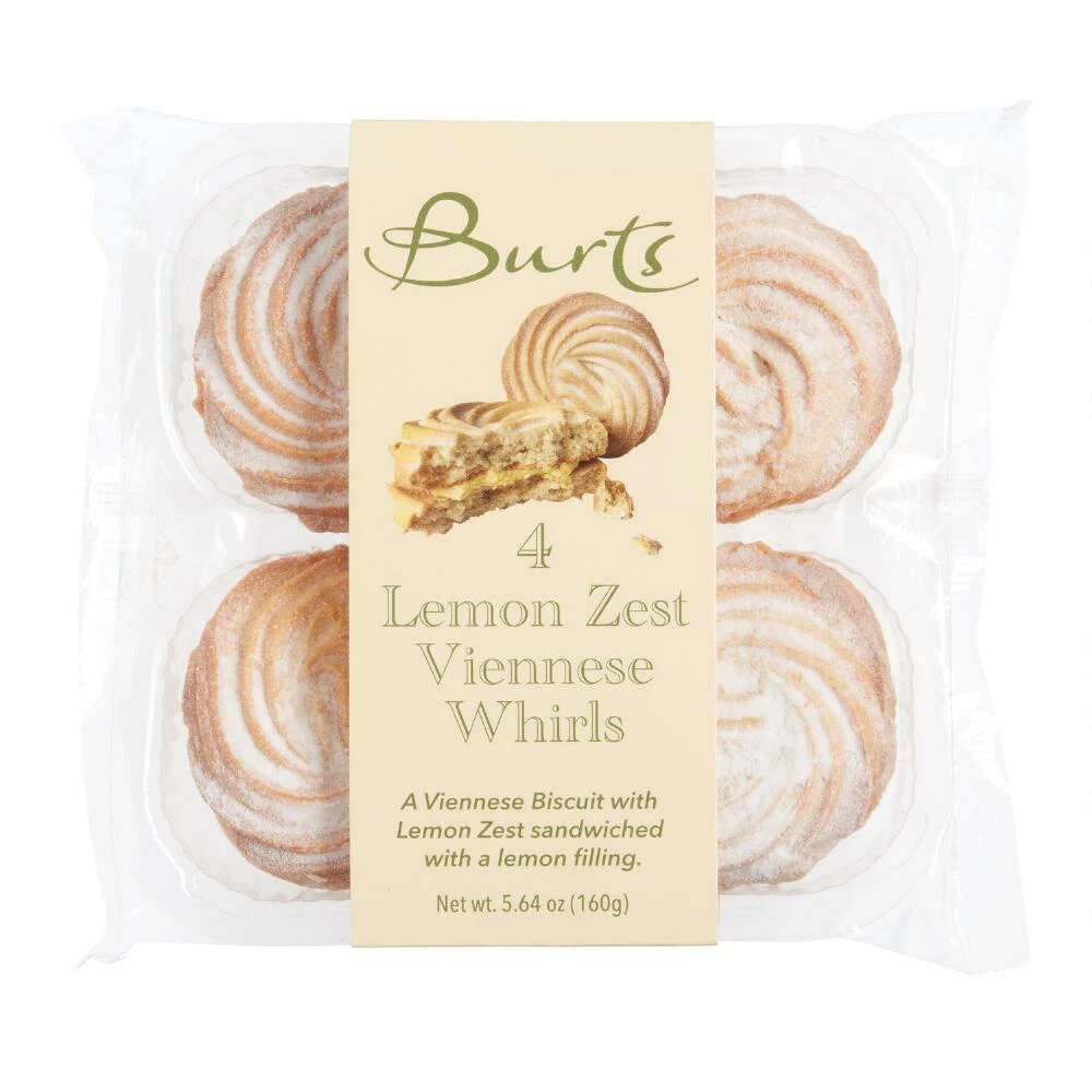 Whipping together favorite baked goods since 1914, Burts Biscuits & Cakes is known for their authentic British confections. These light and airy Viennese swirl biscuits are filled with sweet and tart lemon and cream and pair perfectly with a cup of tea.