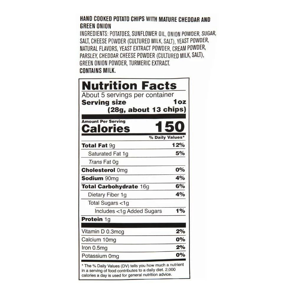 - Made with potatoes, aged cheddar cheese powder and green onion powder