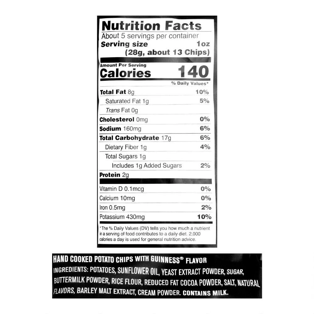 These crispy, thick-cut, hand-cooked chips are seasoned with a tempting blend of roasted barley and hops, infusing them with the iconic flavor of Guinness. Enjoy them on their own or alongside a pint of the stout that inspired them.
