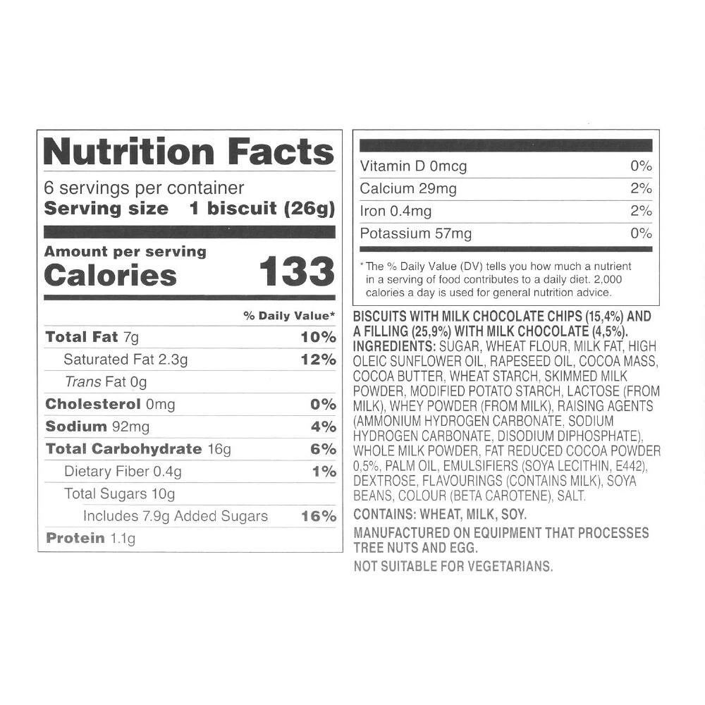Crafting favorite confections enjoyed worldwide, Cadbury brings us these indulgent chocolate-cream filled cookies that are beloved in the UK and beyond. Satisfy your need for a sweet treat with this chocolate chip cookie that’s perfectly crunchy on the outsid and creamy on the inside.