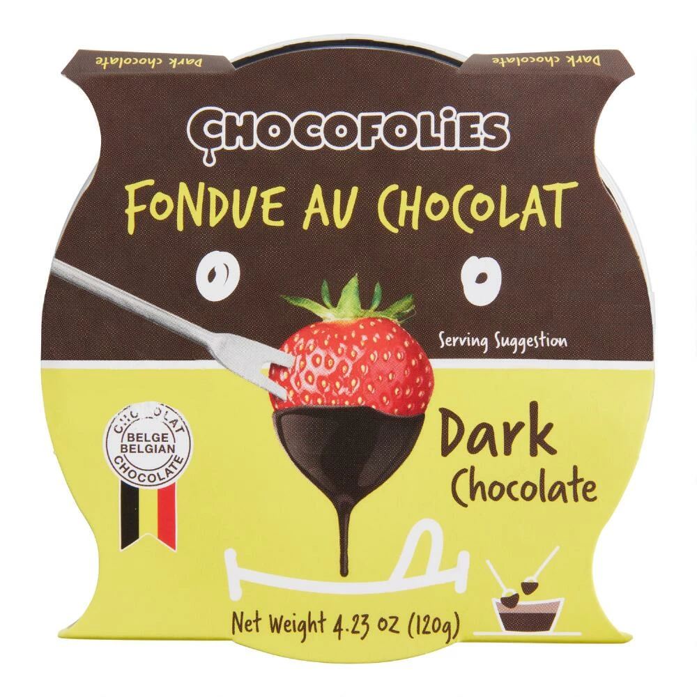 A decadent delight made with premium Belgian dark chocolate, this Chocofolie fondue is ready to serve after just two minutes in the microwave. A classic indulgence to enjoy with sliced green apples, bananas, strawberries, graham crackers, pieces of pound cake and other dipping favorites, it’s a delicious dessert to enjoy on your own or share with friends and family. It also makes a perfect chocolate sauce to pour over pancakes, crepes or ice crea