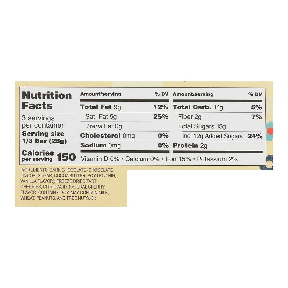 - Made with 54% dark chocolate and sour cherry