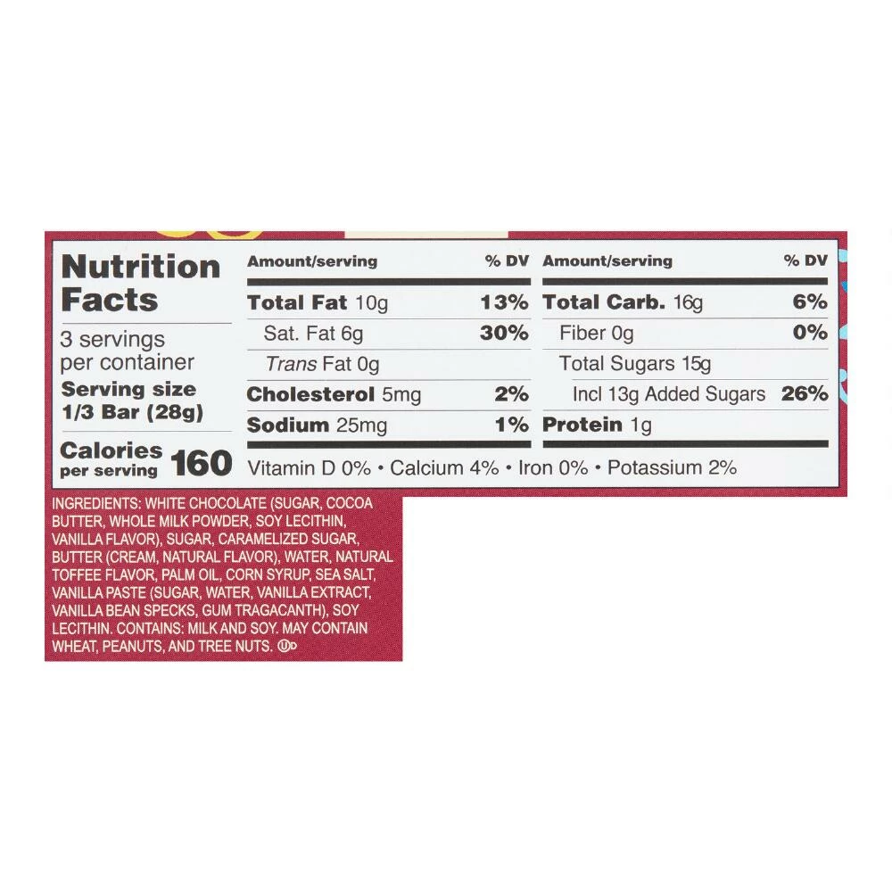 - Contains milk and soy; may contain wheat, peanuts and tree nuts