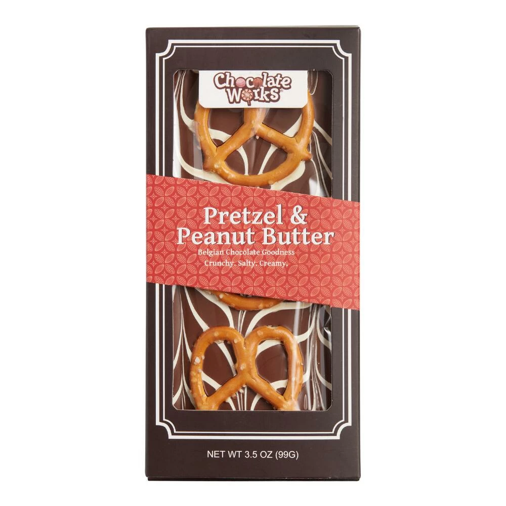- Made with milk chocolate, pretzels and peanut butter