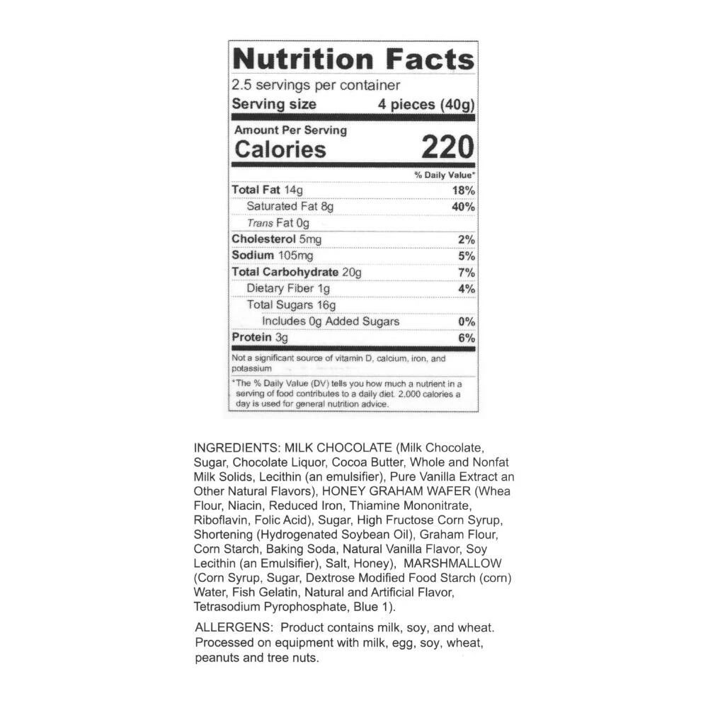 - Made with milk chocolate, mini marshmallows and graham crackers