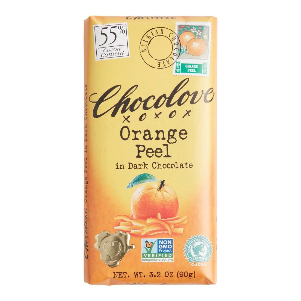 - Made of 55% dark chocolate, dried orange peel and orange oil