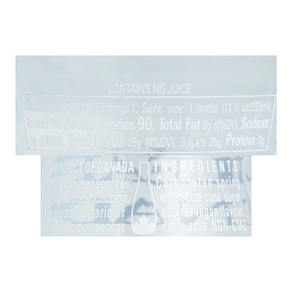 - Made from sparkling water, natural flavoring and pure cane sugar