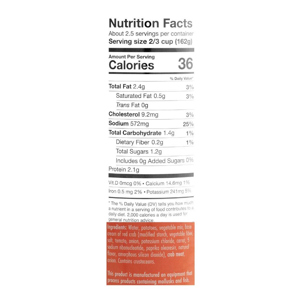 - Made with wild-caught blue crabmeat, potatoes, tomatoes, onions, carrots and paprika