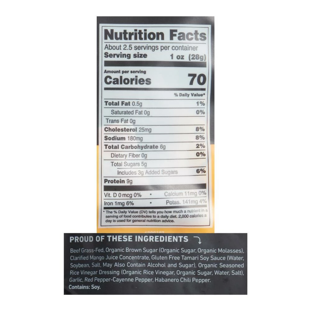 Made from grass-fed beef, this premium beef jerky is full of sweet and spicy flavor and free of preservatives and additives. Packed with protein and the bold taste of mango and habanero, this hunger-slaying snack is sure to quickly disappear.