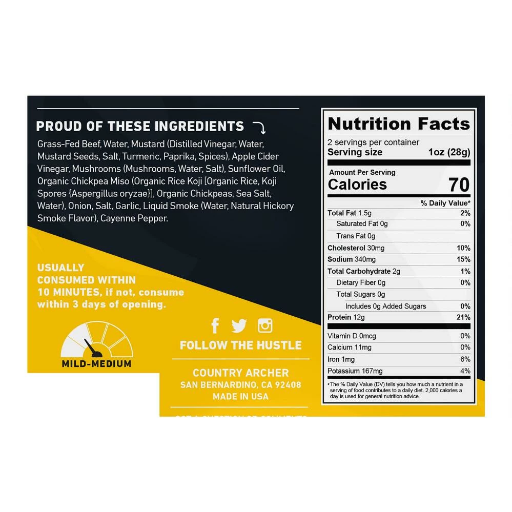 - Made with grass-fed beef, mustard, mushrooms, organic chickpea miso, garlic and hickory smoke flavor