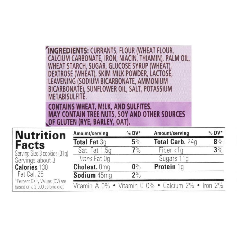 Crawford’s Garibaldi biscuits have been a teatime favorite for over 150 years. Filled with delicious currants, these crispy golden cookies are sweet and satisfying anytime treats to enjoy on their own or alongside a cup of tea, coffee or hot chocolate.