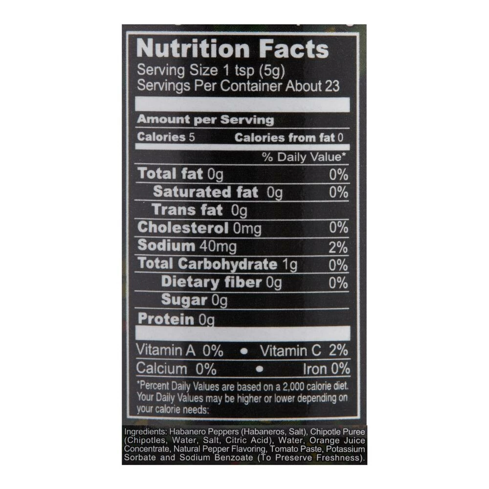 - Made with habanero peppers, chipotle peppers, orange juice, tomato paste and spices