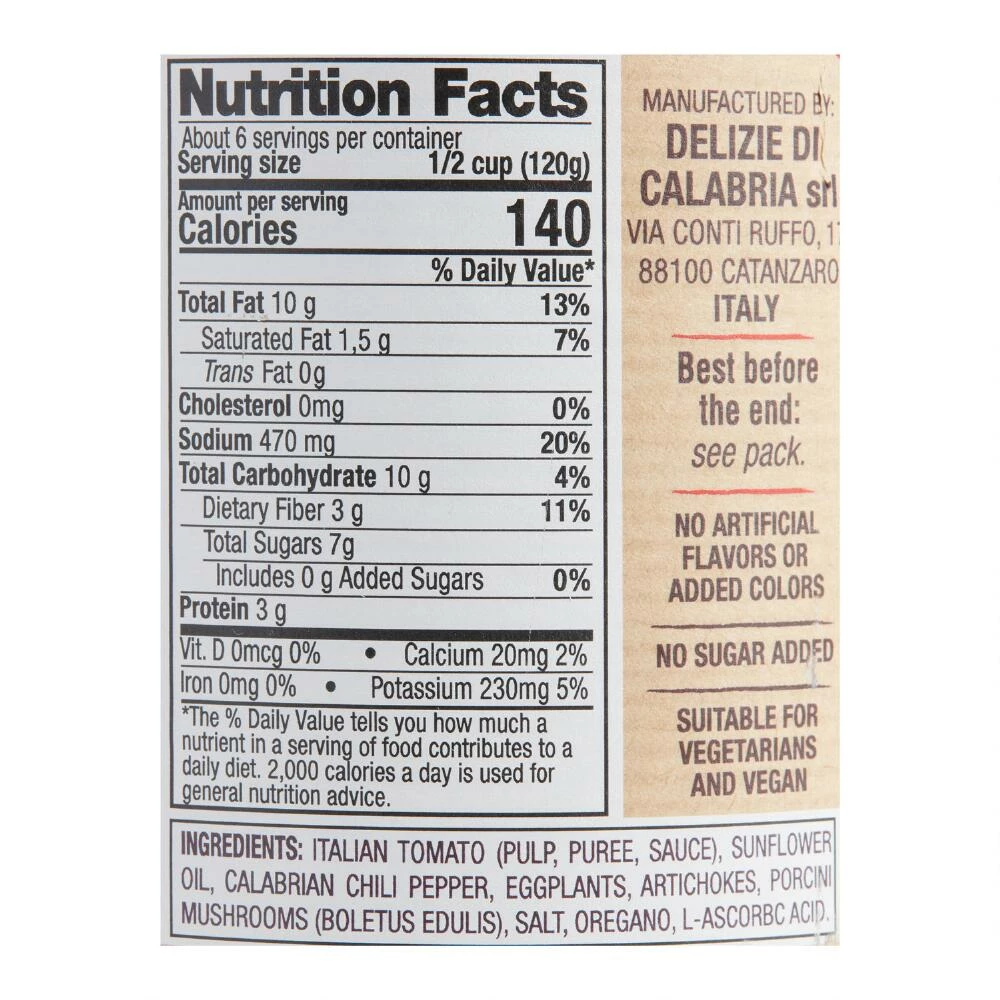 - Made with Italian tomatoes, Calabrian red chili peppers, eggplant, artichokes and porcini mushrooms