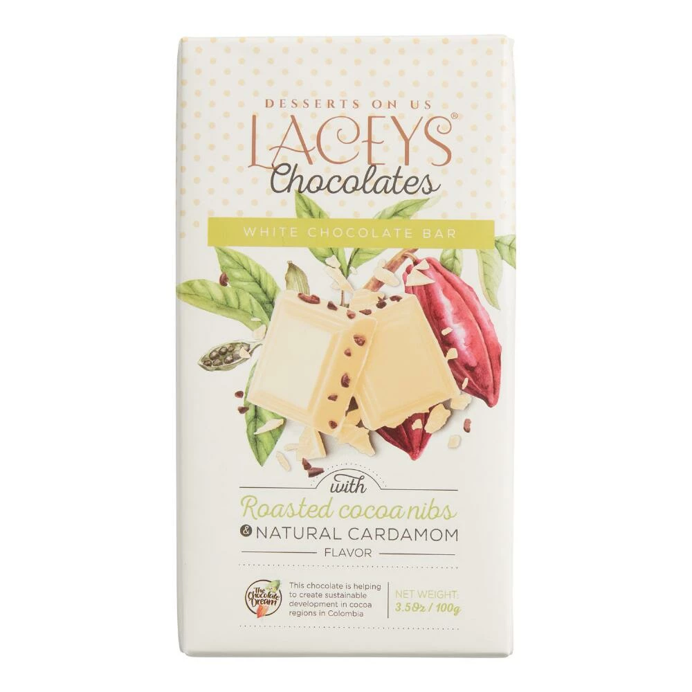 Crafted with premium raw sugar, this creamy white chocolate bar is filled with roasted cacao nibs and the sweet, spicy warmth of cardamom. The confectioners at Desserts on Us Lacey use raw sugar to bring out the sweet flavors of the cardamom-infused white chocolate and its crunchy cocoa nibs. This special indulgence is made to be savored at work, school or anywhere you go.