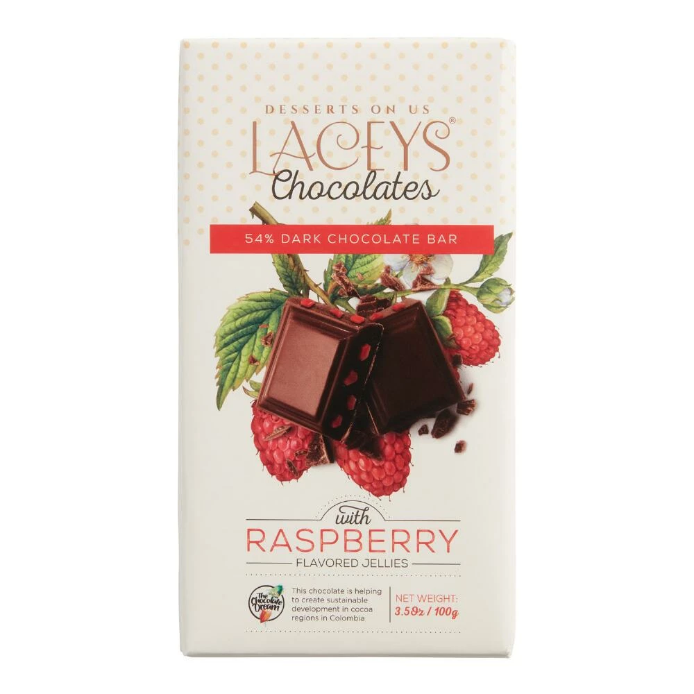 Crafted with premium raw sugar, this gourmet 54% dark chocolate bar is filled with sweetly tart raspberry-flavored jelly. The confectioners at Desserts on Us use raw sugar to bring out the luscious flavors of the unsweetened Colombian chocolate and its delicious fruit filling. This special indulgence is made to be savored at work, school or anywhere you go.