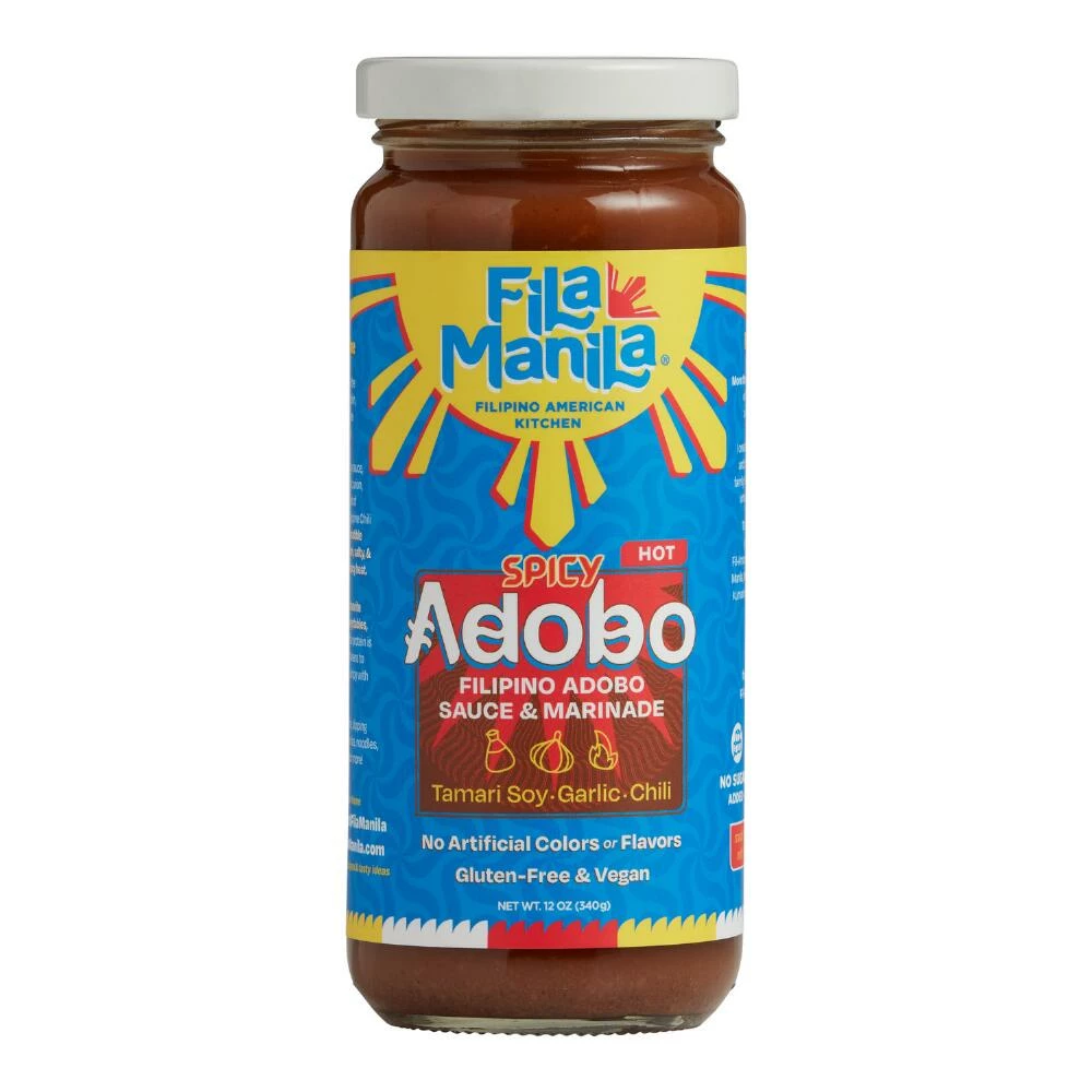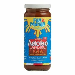 This Fila Manila spicy adobo sauce and marinade is the gourmet base of the signature dish of the Philippines. Made with hot siling labuyo peppers, gluten-free tamari, garlic, onions and authentic Pinoy spices, it transforms your favorite meats, seafood and veggies into a Filipino comfort food that’s tangy, spicy and full of savory umami flavor. Adobo sauce is equally delicious as a dipping sauce or topping for stir-fry and rice dishes.
