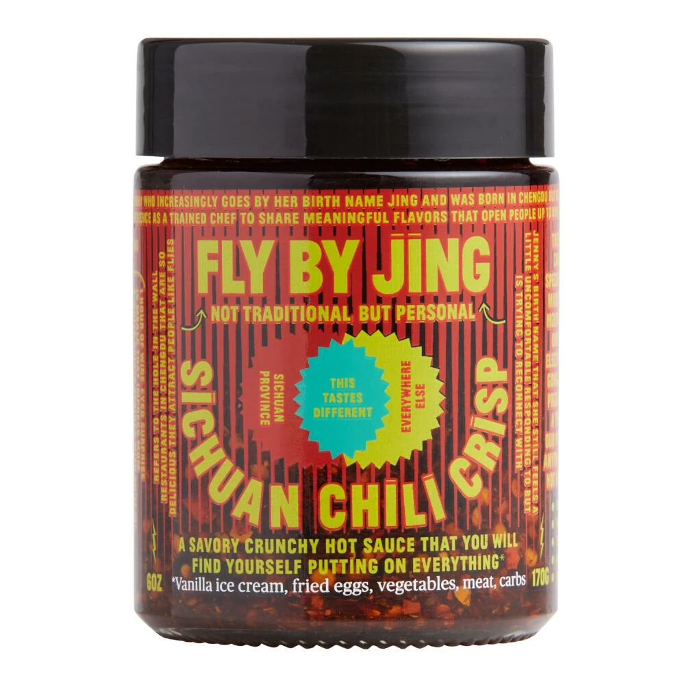 A fiery Chinese hot sauce and glaze with a unique crispy texture, Fly By Jing’s Sichuan sauce is boldly original and incredibly versatile. Its umami-packed savory blend of spices and incredible crunch makes it a delicious topping for a wide range of foods, from rice and noodles dishes to fried eggs, meats, veggies and even vanilla ice cream. Fly By Jiang’s buzzworthy condiments are crafted in Chengdu, in the heart of the Sichuan province.