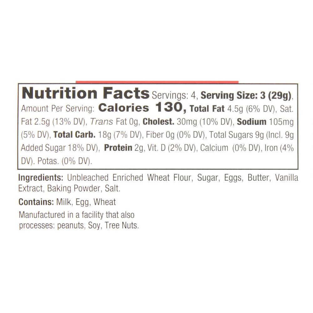 - Made with unbleached wheat flour, eggs, butter and vanilla extract