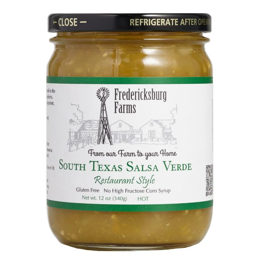 Hot and spicy with a delicious tangy flavor, this restaurant-style salsa verde is made the South Texan way, with green jalapeño peppers instead of tomatillos. A savory farm-to-table treat that’s big on fiery flavor, this Fredericksburg Farms gourmet salsa is a great topping for traditional Mexican food, grilled chicken, broiled fish, baked potatoes and more.
