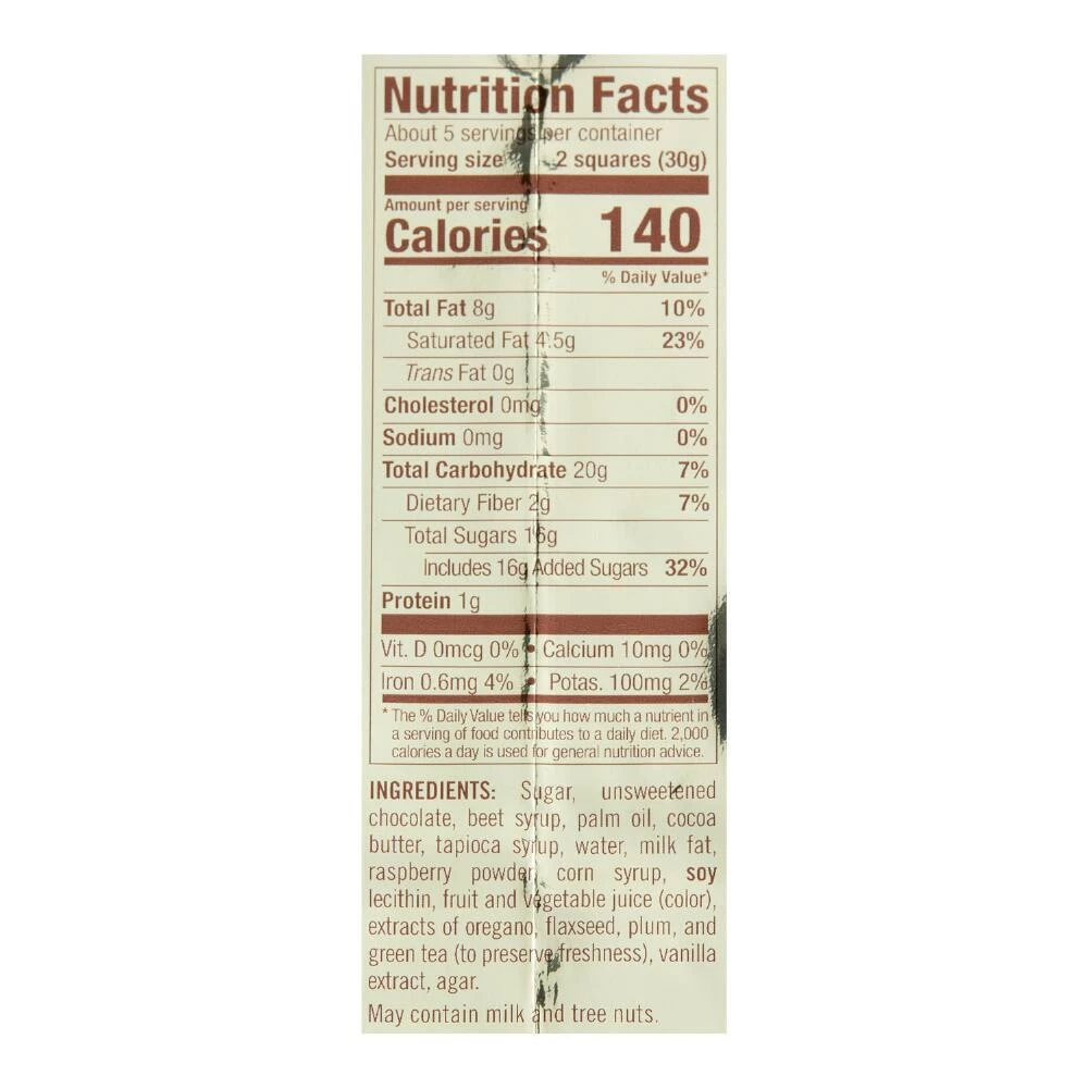 - Made with unsweetened chocolate, raspberry powder and vanilla extract