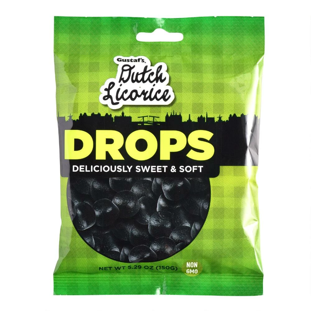 The authentic taste of lightly salted and sweet black licorice gives Gustaf’s Dutch candy drops their traditional appeal. Fat free and delicious, these soft and chewy international treats are made in Holland with natural licorice extract and a hint of salt that brings out their mouthwatering sweetness. These classic bite-sized drops are a perfect choice for the black licorice connoisseur.