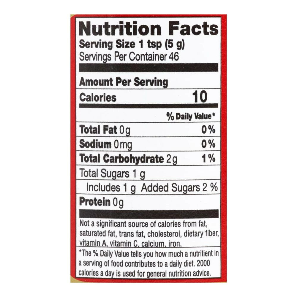 - Made with water, sugar, mustard seeds, vinegar and spices