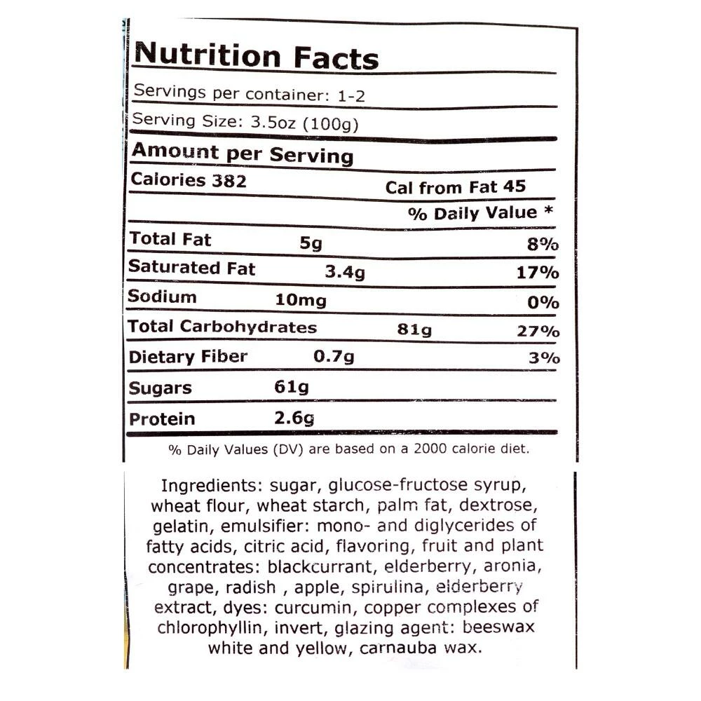 - Apple, raspberry, lemon, banana, forest berry, orange and melon-flavored gummy candy
