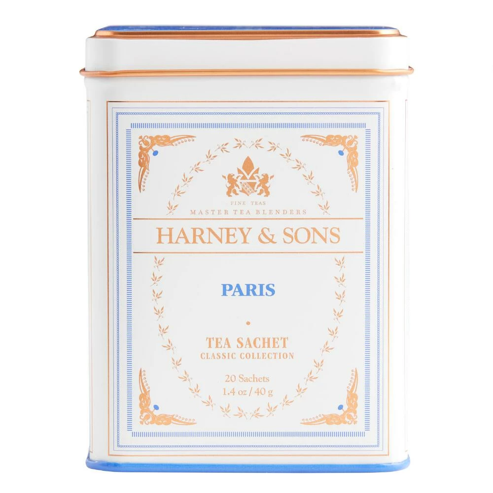 This blend of black and oolong tea from Harney & Sons was inspired by the famous teashops of Paris. Packed in a decorative tin, these delicate sachets brew a medium-bodied cup with notes of bergamot, black currant, vanilla and caramel.