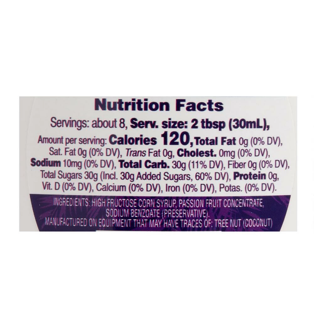 - Made with passion fruit juice and cane sugar