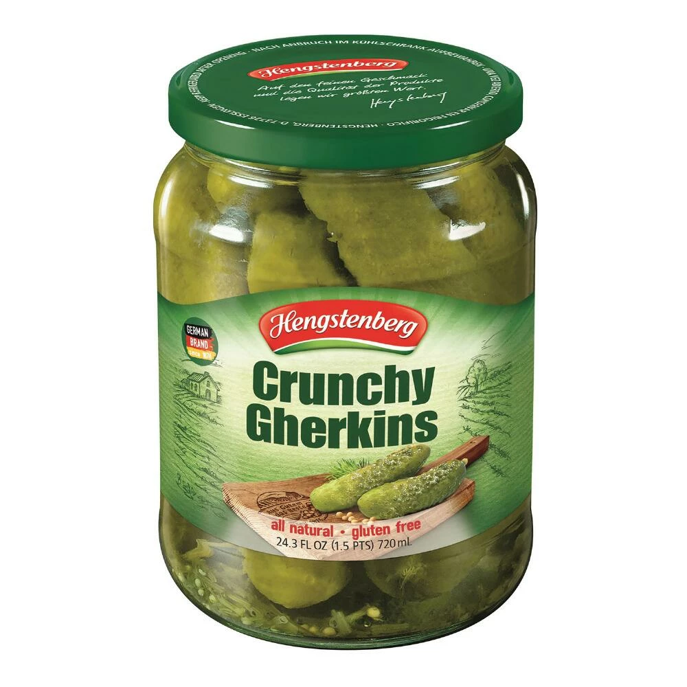 These German gherkins are made with savory and mild spices for an impeccably unique flavor. Our favorite way to eat them are diced up in potato salad or straight from the jar!