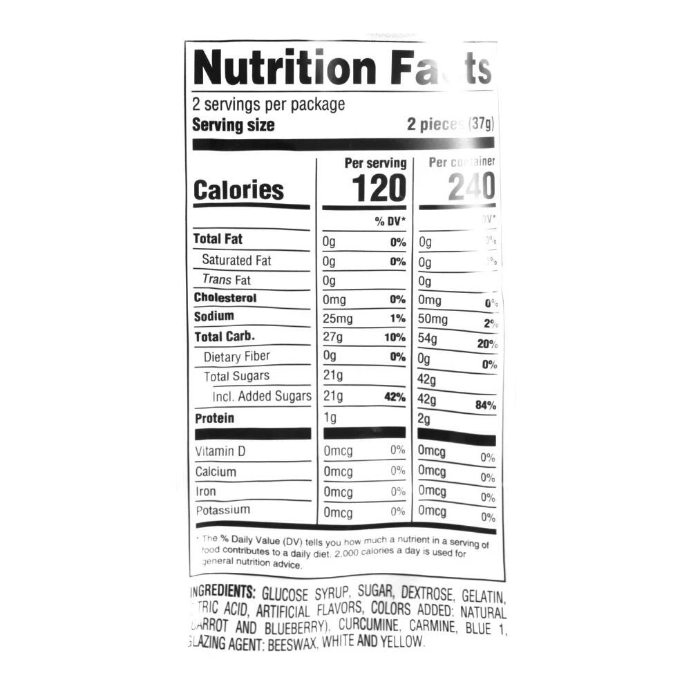 - Fruit-flavored gummy candy with liquid center