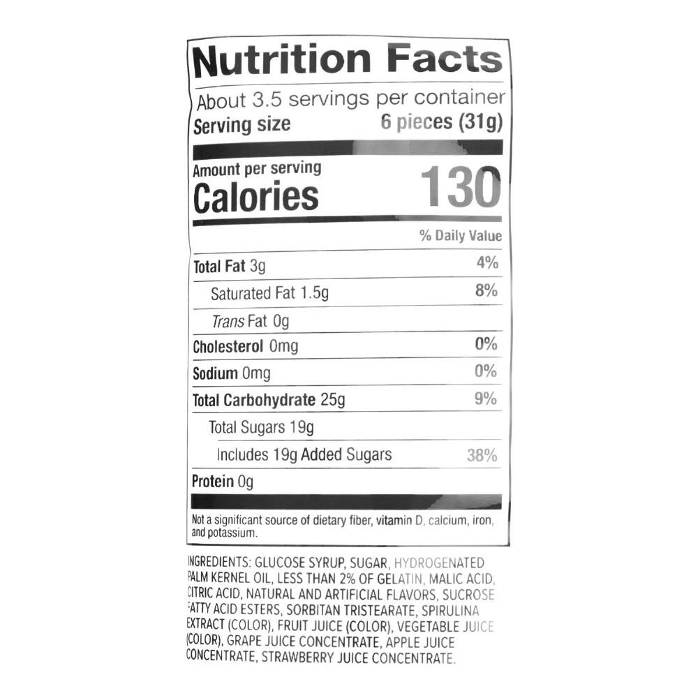 Bursting with delicious fruit flavors, this mix of chewy strawberry, green apple and grape candies is made with real juice and puree. Each sweet candy treat is individually wrapped for easy sharing and snacking on the go.