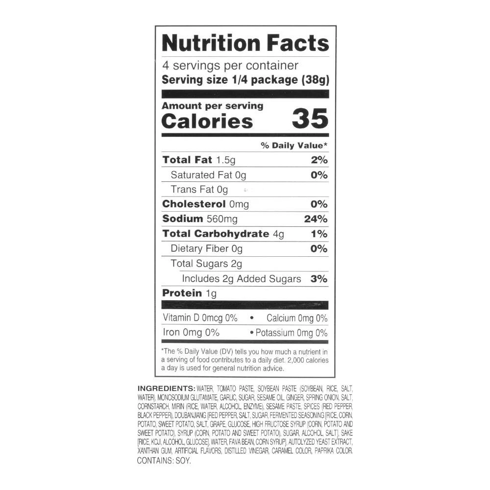 - Made with soybeans, garlic, sesame oil, ginger, spring onions and doubanjiang chili bean paste