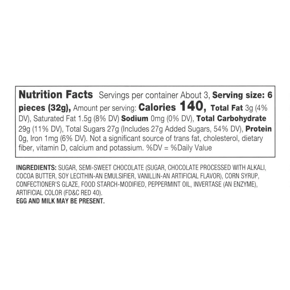 - Made of semi-sweet chocolate with mint cream filling