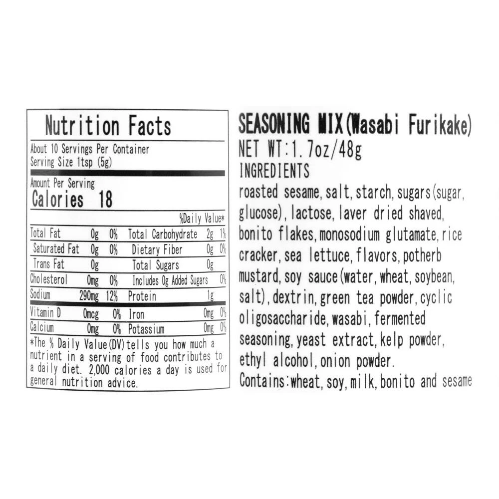 Furikake is a Japanese seasoning that varies from region to region but is typically made with sesame seeds and bonito flakes. Translated, Furikake means to sprinkle over, inviting you to use it on everything from rice to udon noodles to grilled salmon. The flavor of wasabi comes through along with the crunchy goodness of sesame and bonito.