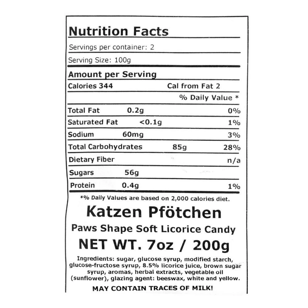 Katjes means “little kitten” in Dutch, so it’s no surprise that Katzen Pfotchen means “cat paws”! Delicious Katjes Katsen Ohren are spicy, soft licorice candies that contain no artificial coloring. Because they’re made with real licorice root juice, along with extracts of chamomile and other herbs, these cat paw shaped candies are soothing on the stomach and respiratory tract.