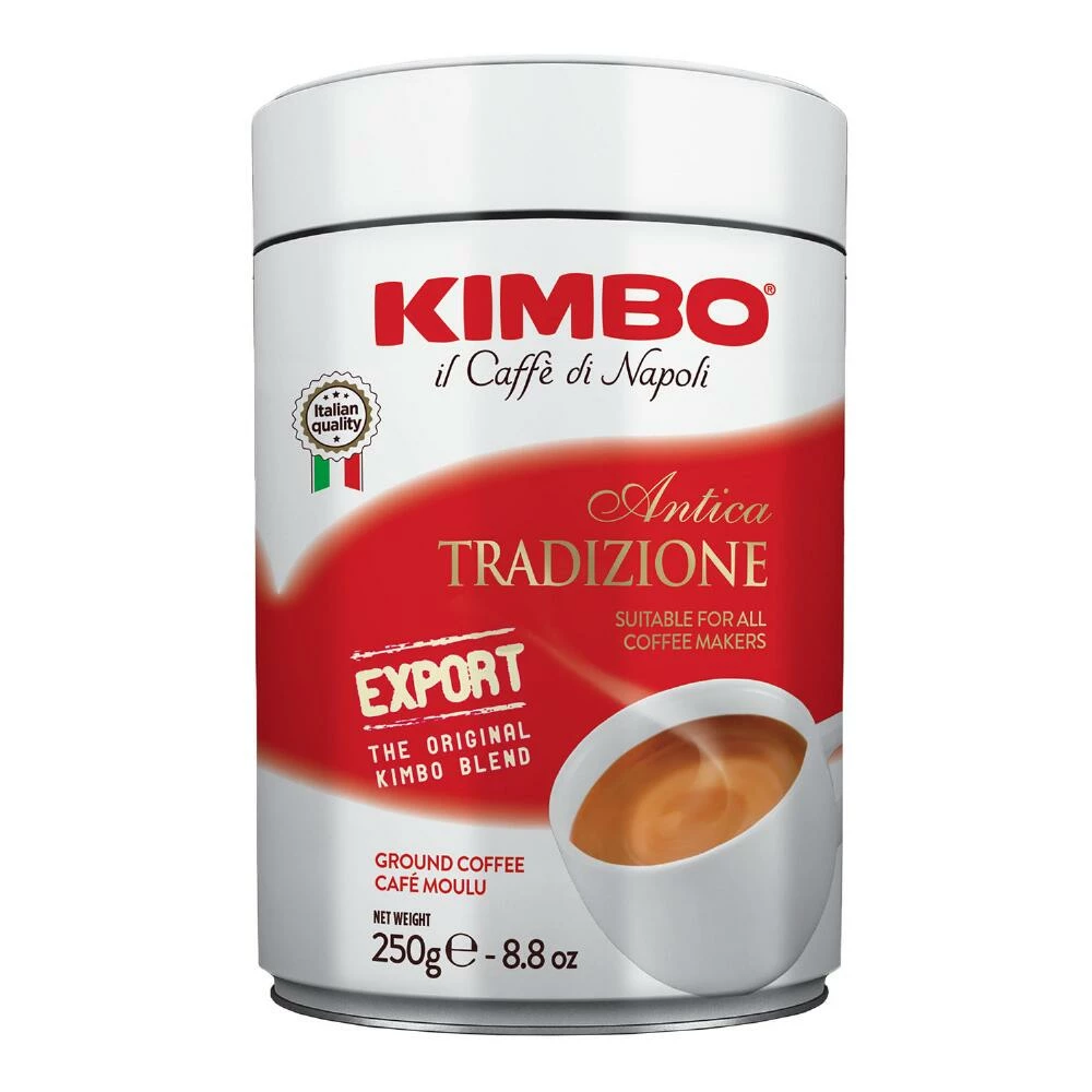 A favorite among Italian coffee drinkers, Kimbo uses only the best coffee beans in their blends. Antica Tradizione is the original Kimbo ground-coffee blend, featuring both Arabica and Robusta beans roasted in the traditional Italian method. This tin of potent dark-roast ground coffee delivers a full-bodied, luxuriously aromatic brew.