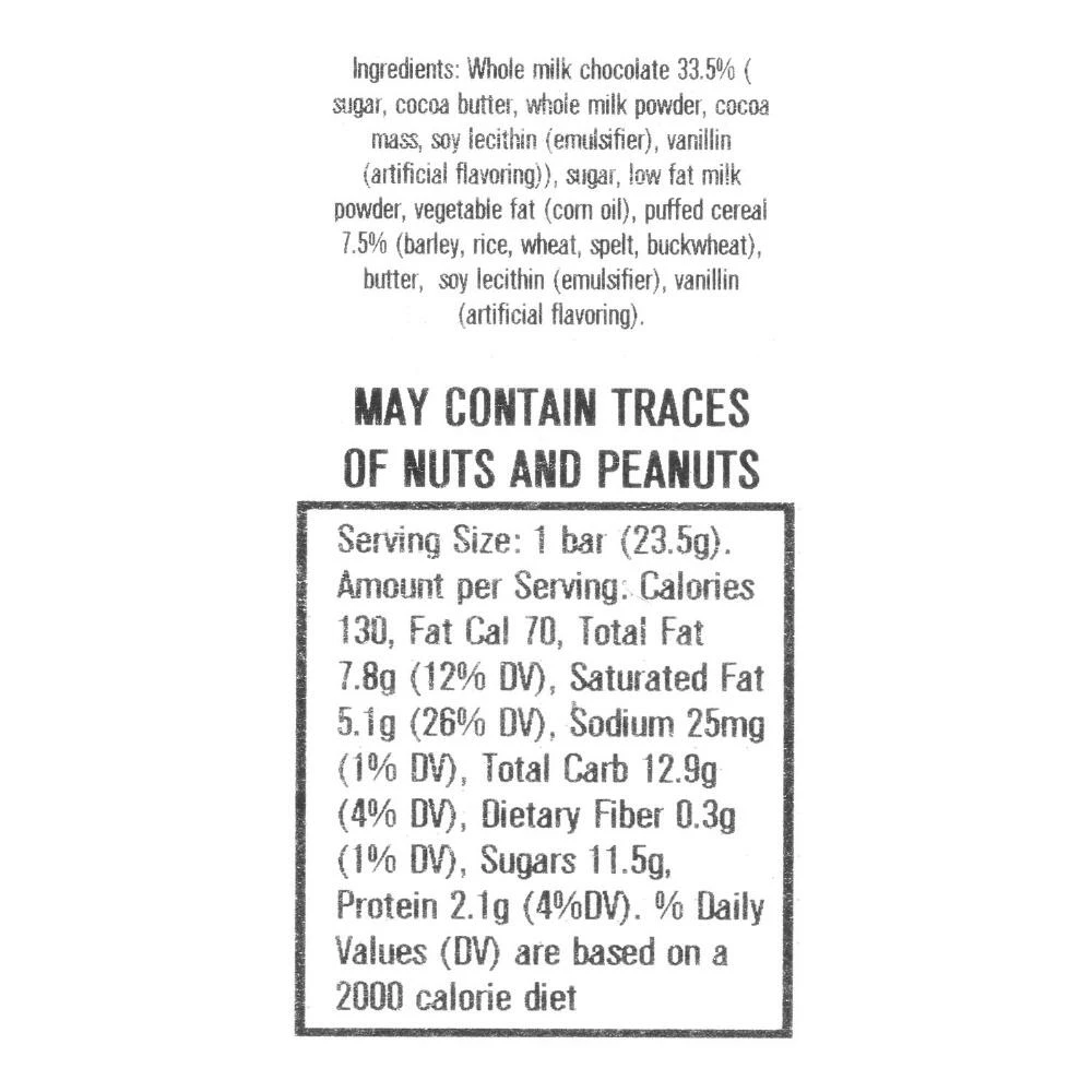- Made with milk chocolate, milk cream, puffed rice and roasted cereals