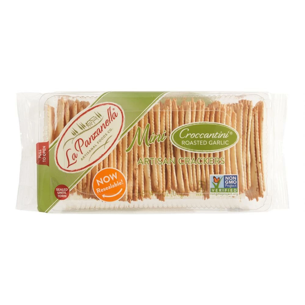 Add a dash of flavor to your day with these garlic croccantini crackers. Their savory garlic taste is the perfect complement to rich cheeses and meat.