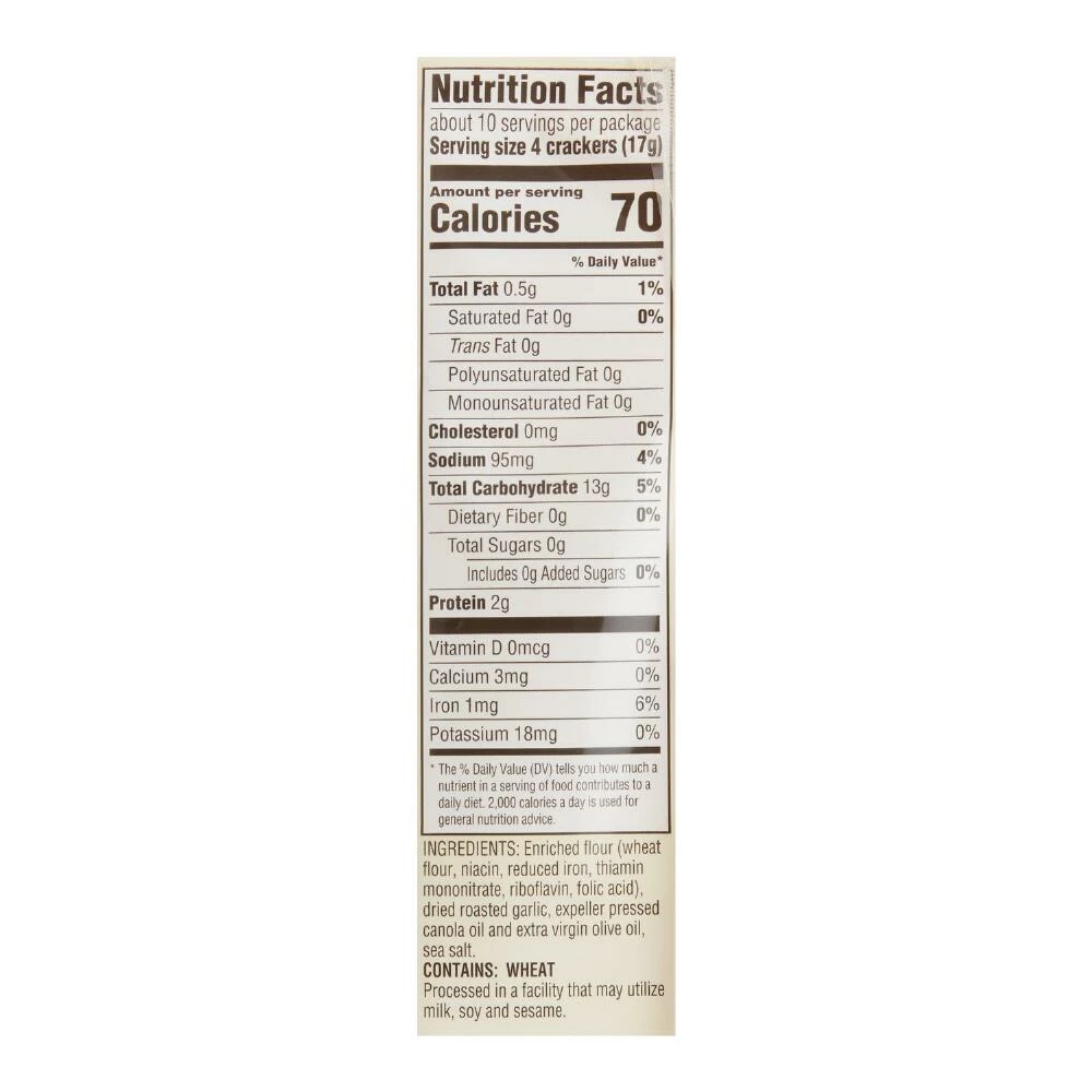 - Made with wheat, dried roasted garlic, extra virgin olive oil and sea salt garlic