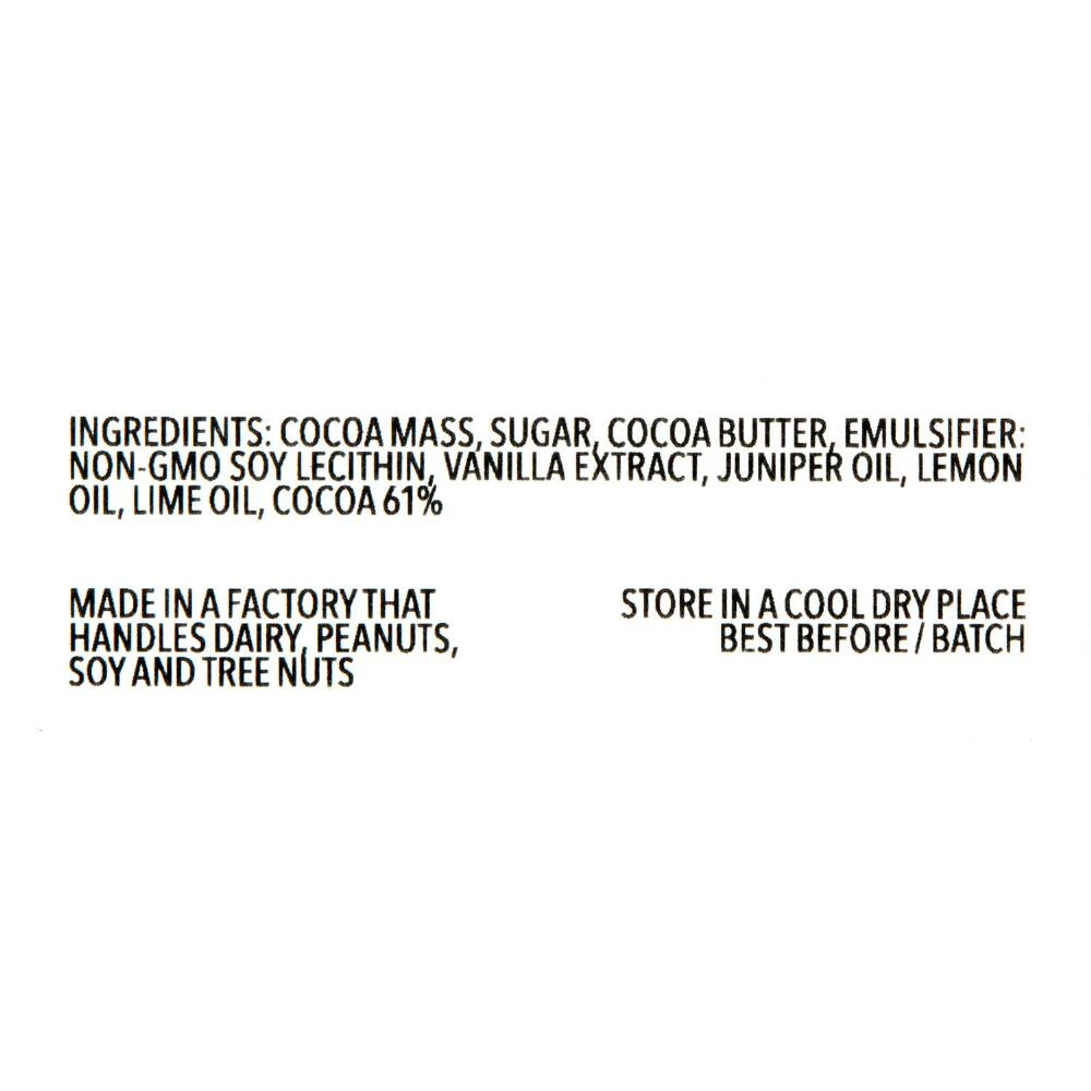 - Made of dark chocolate with juniper oil and lemon oil