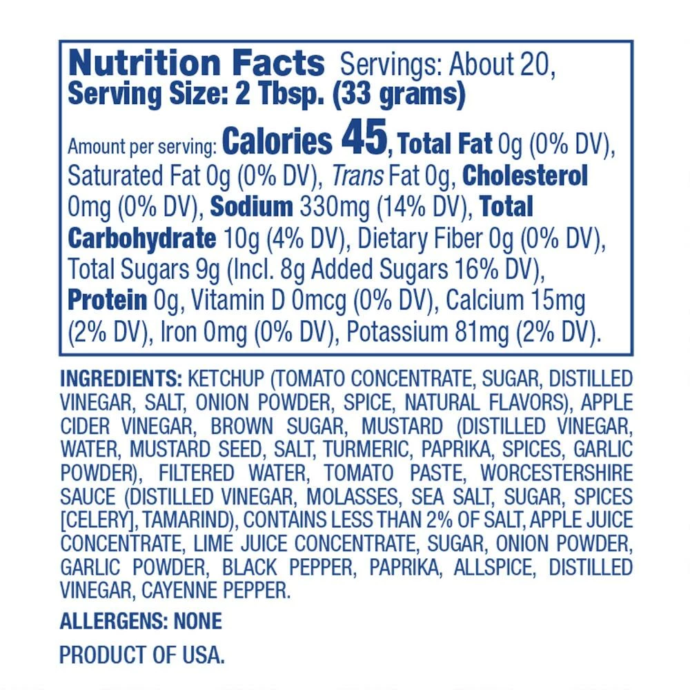 - Made with brown sugar, cider vinegar, tomatoes, Worcestershire, apple and lime juices and spices