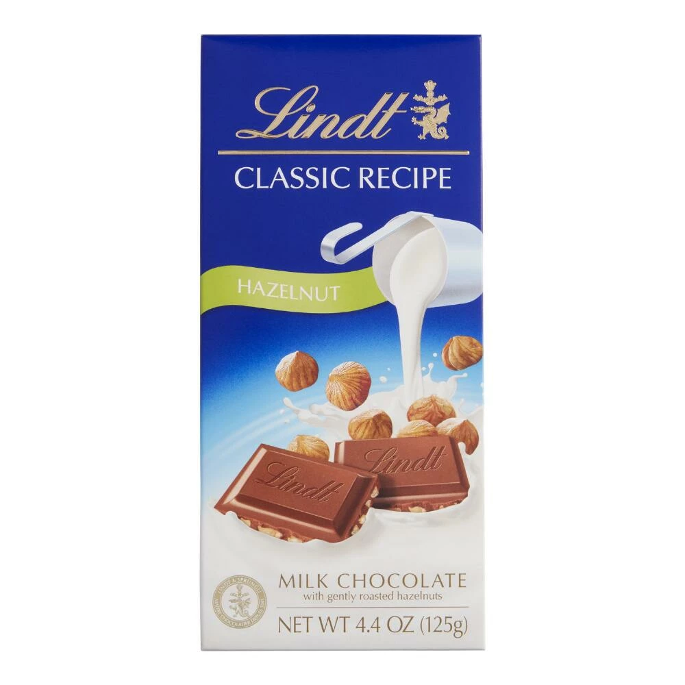 Premium milk chocolate and crunchy hazelnuts come together in this classic dessert bar. Made from Lindt’s original chocolate recipe in keeping with Swiss tradition, this gourmet milk chocolate is indulgently smooth and creamy with a delicious hazelnut flavor in every bite.